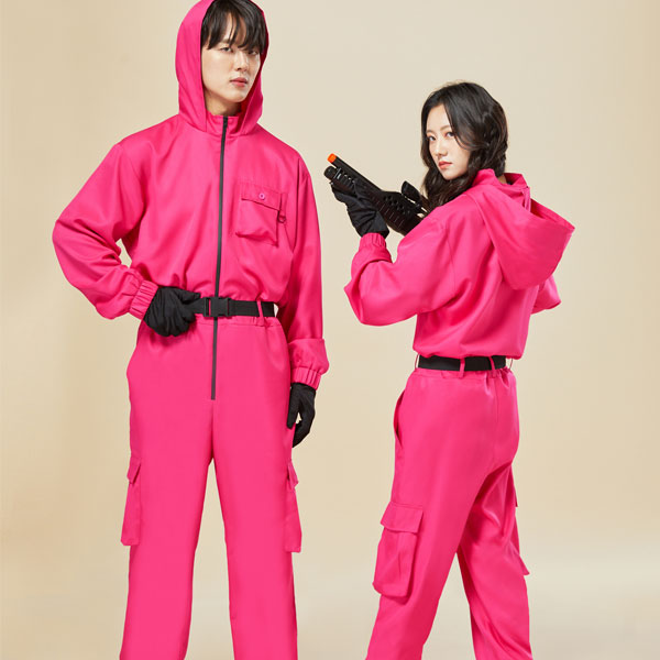 오징어게임 관리자 진행자 옷 점프수트 핑크(허리벨트+장갑 포함)
